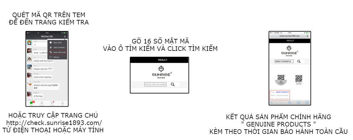 Để bảo vệ lợi ích của người tiêu dùng, mỗi chiếc đồng hồ hiệu SUNRISE đều có nhãn chống hàng giả độc đáo.